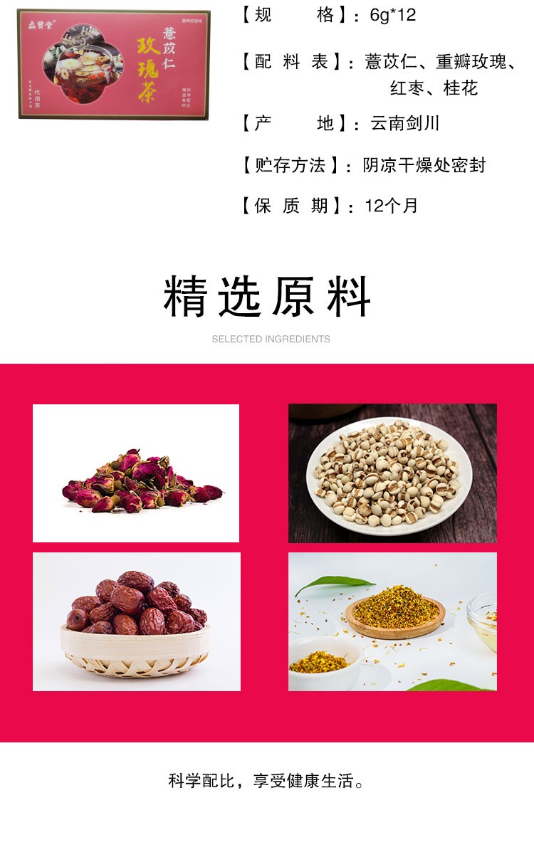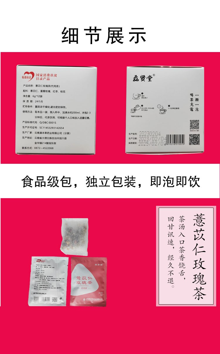 云南剑川 磊贤堂 薏苡仁玫瑰茶6g*12
