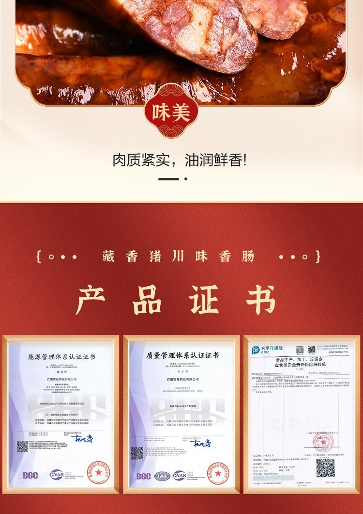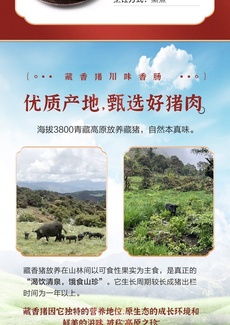 西藏芒康 邦达仓 盐井藏香猪广味香肠300g