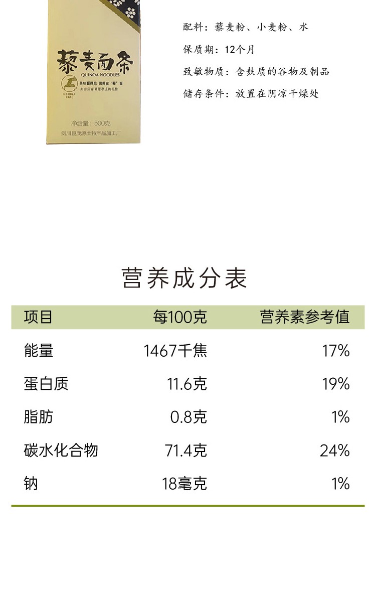 云南剑川 滇理白家 藜麦面条500g