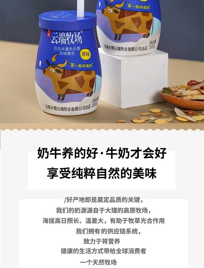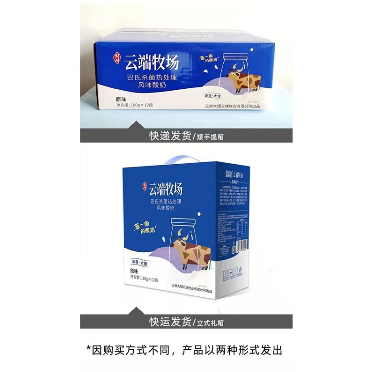 【单一地址100件起订】云南剑川 云端牧场 原味酸奶180g*12瓶