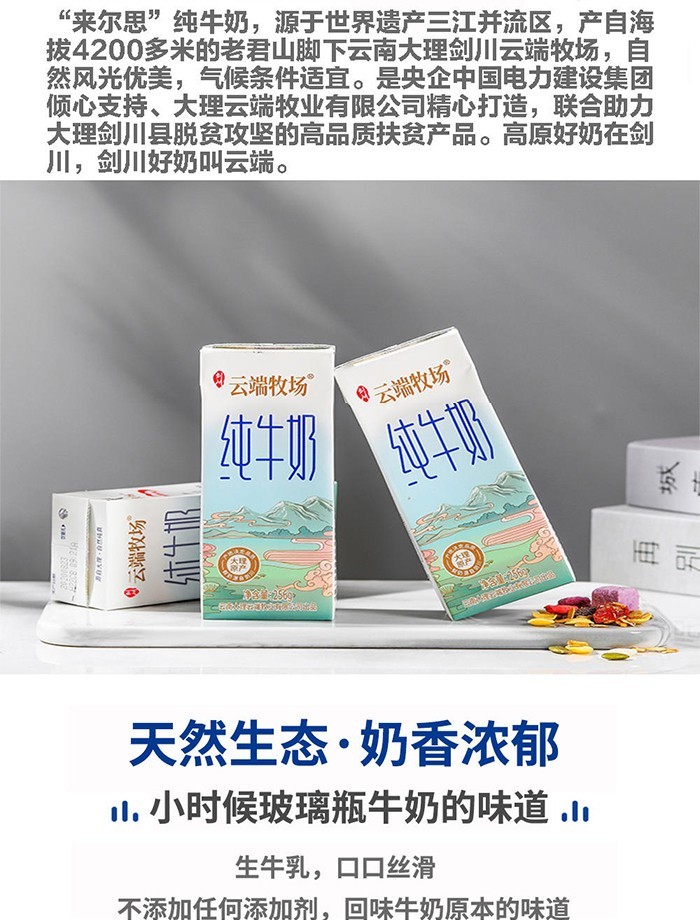 【单一地址200件起订】云南剑川 云端牧场 纯牛奶256g*12盒