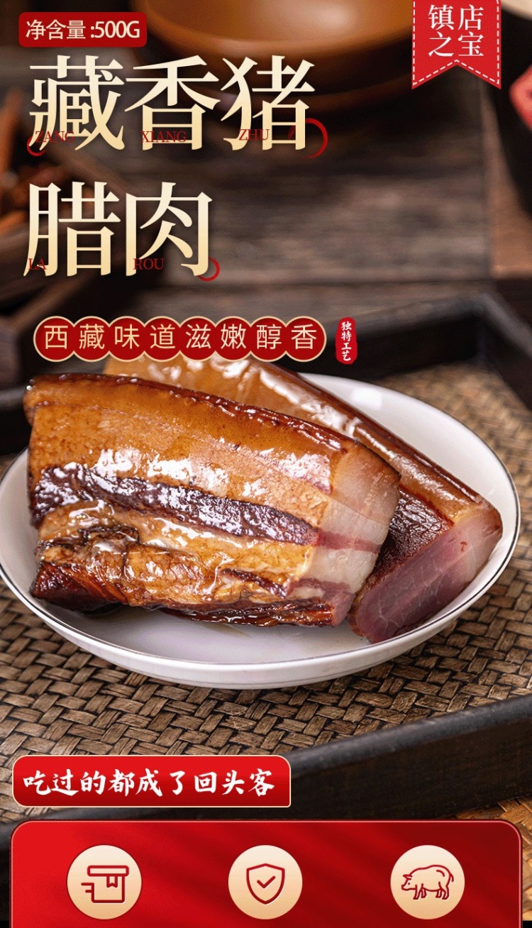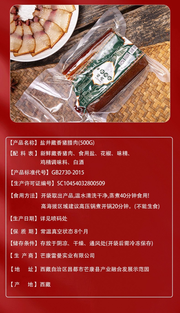 西藏芒康 邦达仓 盐井藏香猪腊肉500g
