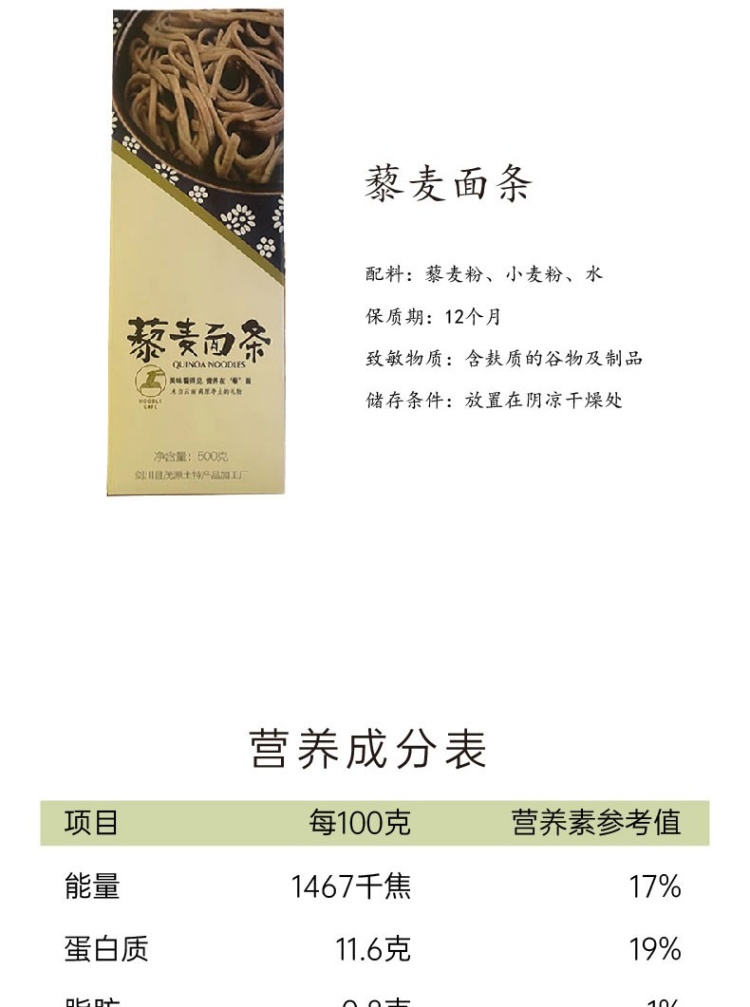 【单一地址100件起订】云南剑川 滇理白家 藜麦面条500g