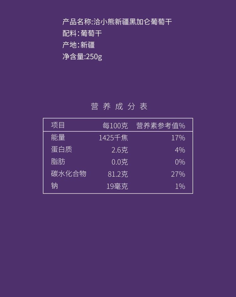 新疆民丰 洽小熊 黑加仑葡萄干250g